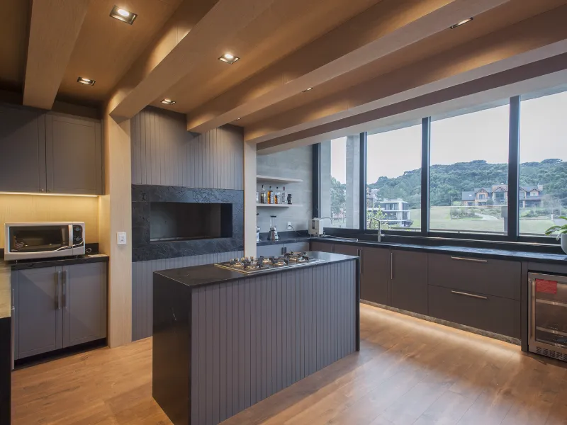 O ambiente assinado pela arquiteta Camila Neves valoriza a integração dos espaços, com soluções de marcenaria pensadas para funcionalidade, elegância e conforto no dia a dia.