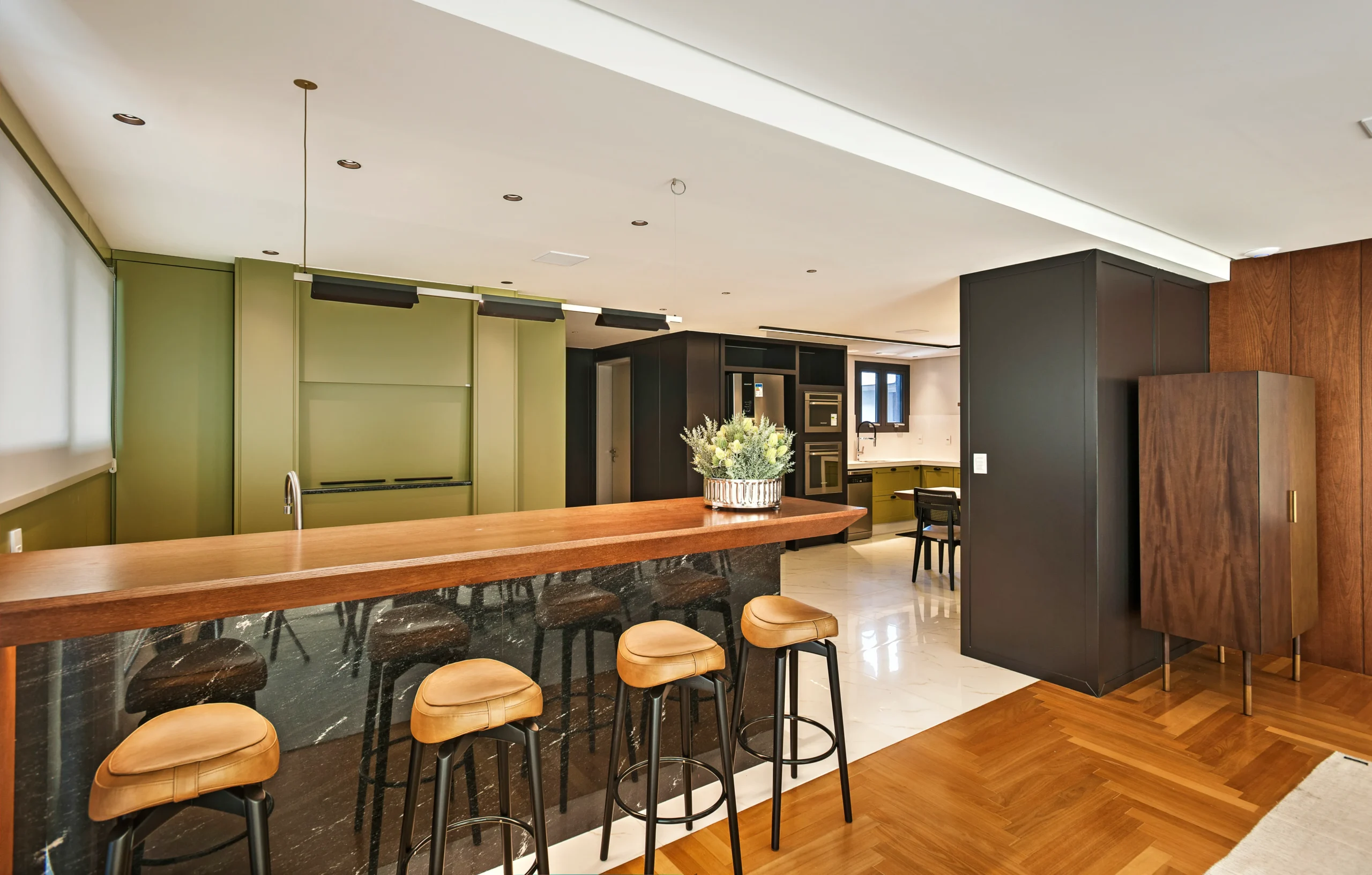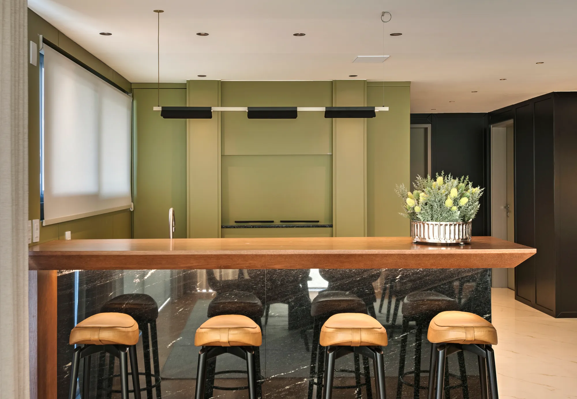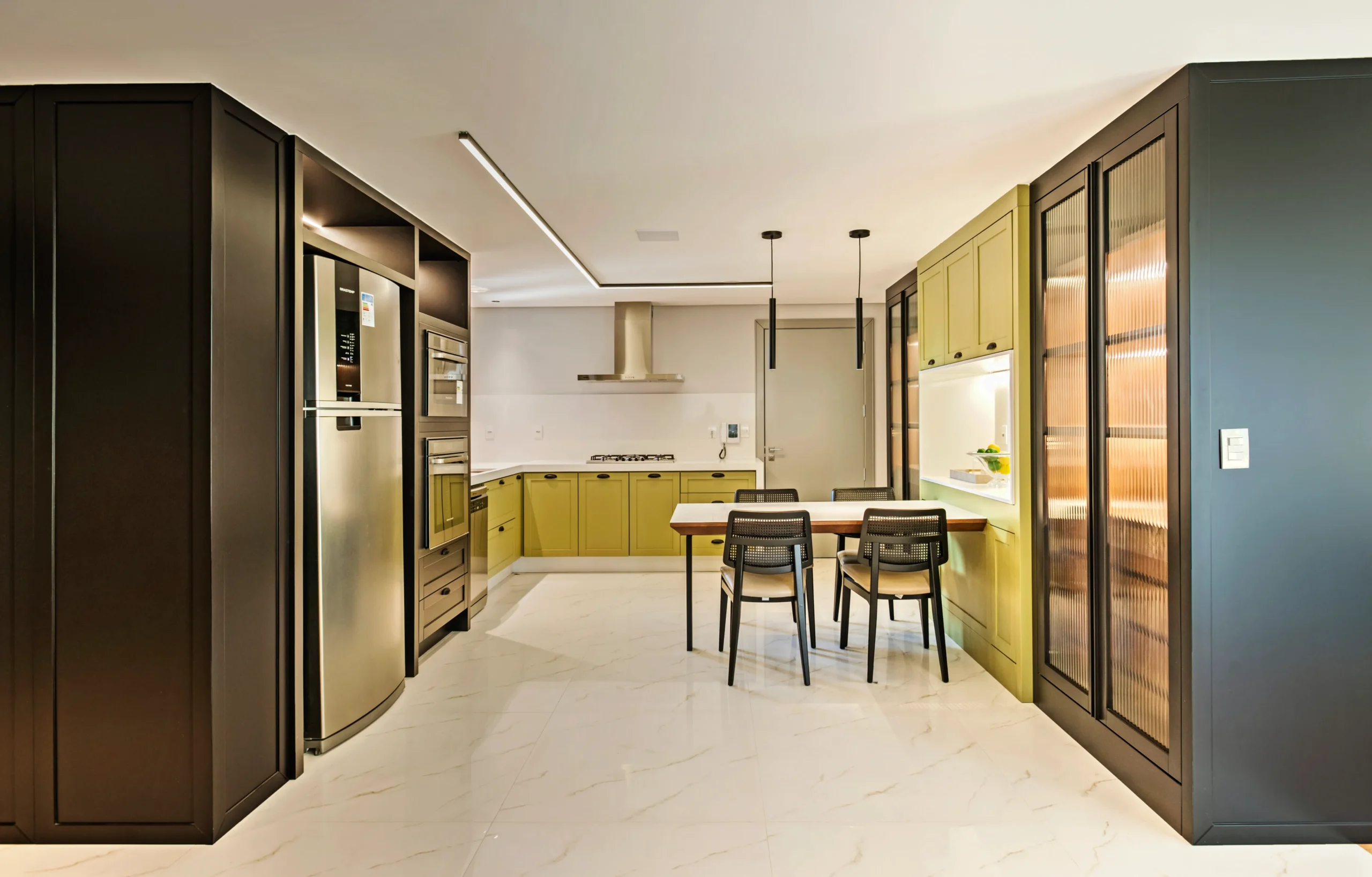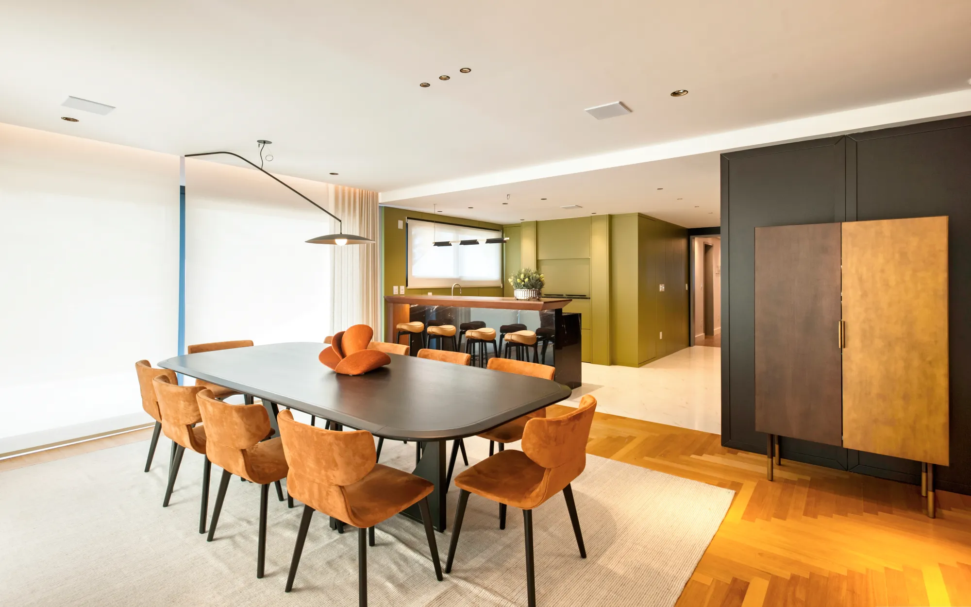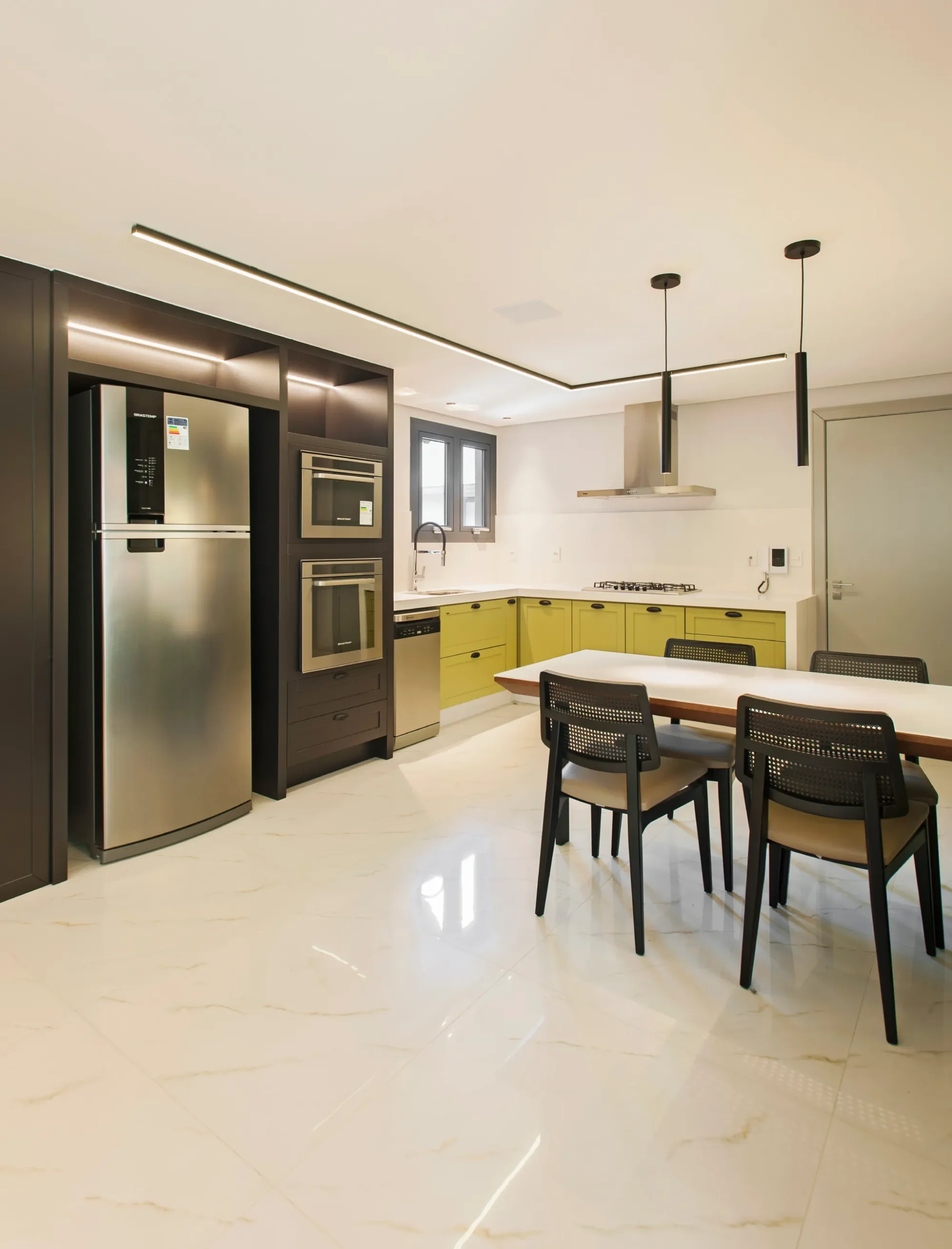 Um projeto que valoriza integração e fluidez entre os ambientes. A marcenaria foi pensada para organizar os espaços e criar uma estética contemporânea e acolhedora.